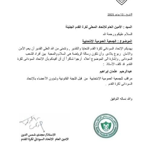 *اتحاد الجنينة يفضح الاتحاد العام ويكشف مستند موافقته على الجمعية الانتخابية*